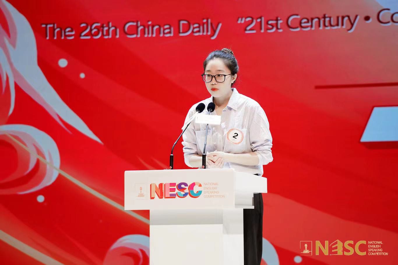 本次比赛从全国 28 个賽区选拔出的70余名优秀选手以及第25届全国总决賽获前五名的学校选送的选手同台竞技。比赛流程分为已备演讲、即兴演讲以及即兴问答三个环节。10月3日的比赛的定题演讲的主题为“Protecting the Blue Planet”,两位选手从不同角度进行了精彩的阐述,语音优美、表达流利,充分展示了良好的语言能力。在即兴演讲与回答问题环节中,两位选手发挥出色,体现了敏捷的反应能力及稳健的心理素质。她们对社会话题抒发见解,针砭时弊,体现了当代大学生思考社会问题的深度和广度。最终,刘佳艺同学及樊蓉同学获得总决赛三等奖。